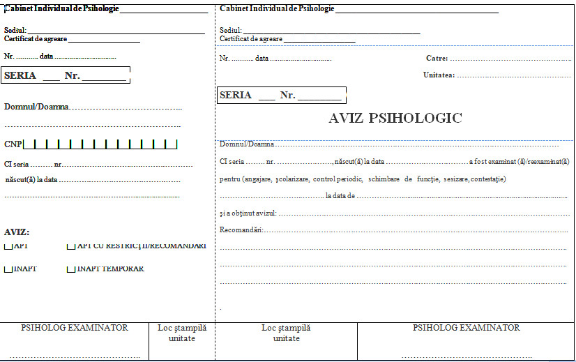 Testare psihologica in vederea angajarii / autorizarii / mentinerii in functie / promovarii